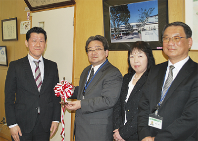 「左利き」の児童が抱える不自由さを解消しようと、西門の文房具店・菊屋浦上商事株式会社の浦上裕生代表取締役社長は22日、南区・夢の丘小学校に左利き用の「お玉」を寄付した。