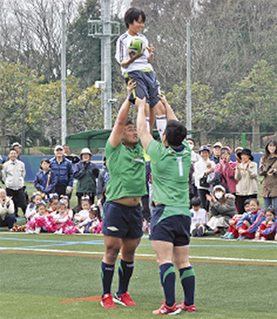 初めに加山俊夫市長など多くの来賓が駆け付ける中、テープカットが行われ、2014年から整備が進められてきたグラウンドの完成を祝った。その後、記念イベントを実施。市内を拠点に活動する三菱重工相模原ダイナボワーズ(ラグビー)、ノジマステラ神奈川相模原(女子サッカー)が競技の垣根を越えて、ラグビーボールを使ったペナルティーキック対決などを行い、参加した市内の子どもたちとも交流した。ステラの田中陽子選手は「すごくきれいで、転んでも痛くなさそう。芝も長めなのでキックも蹴りやすそうです」と初めて足を踏み入れた感想を口にした。