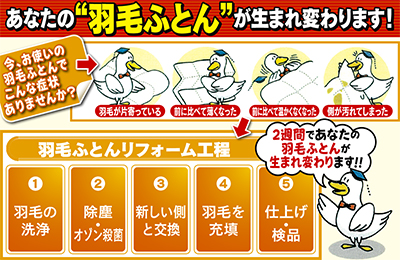 お勧め「羽毛ふとんリフォーム」&「ふっくら若返り加工」