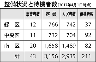 特養の入所基準をめぐっては、介護保険法の改正に伴い15年4月以降、基本的に要介護3以上に限定。県内各市で待機者の数は減少しているのが現状だ。