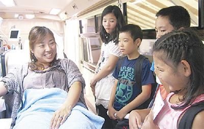 子どもたちは、実際の献血の手順に沿って受付・問診、採血等の一連の流れを体験。夏休みの自由研究として参加してみては。