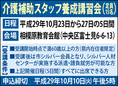 神奈川県シルバー人材センター連合会では、厚生労働省委託事業の「介護補助スタッフ養成講習会」を相模原市で開催する。この講習会では介護補助スタッフに必要な知識や技術を習得できる上、「認知症サポーター養成特別講座」も実施。認知症の人をサポートする”地域の応援者”にもなれる内容となっている。