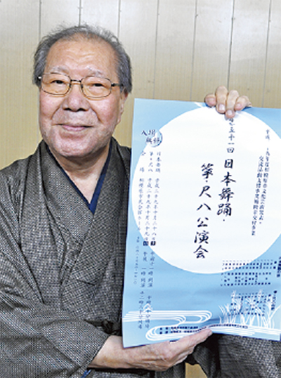 「日本舞踊の部」は28日の午前11時開演(10時30分開場)。演目は「一人椀久」(長唄)、「桜絵巻」(長唄)、「お夏」(清元)など15曲。「琴・尺八の部」は29日の午後1時開演(0時30分開場)。「初鶯」「竹生島」「山谷菅垣」など9演目の他、総勢25人の奏者による大合奏「六段の調」は見所。「伝統芸能に興味のある方はどなたでも大歓迎です。ぜひこの機会に楽しんでいただければ」と坂東会長。
