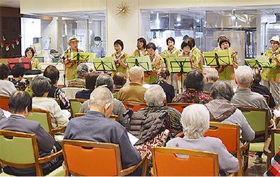 区内を中心に活動するウクレレサークル「サルビアの会」が5日、特別養護老人ホームマナーハウス横山台を訪れ、演奏を披露した。