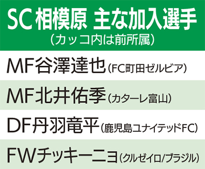 地元サッカークラブ・SC相模原はこのほど、今季の新加入選手としてJ2FC町田ゼルビアからMF谷澤達也らを獲得したことを発表した。