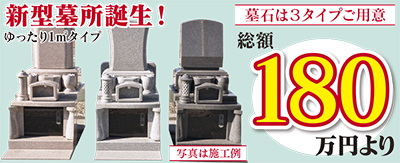 なお、同霊園には増設に伴い、1平方メートルの新型墓所が80区画誕生した。墓石も3タイプの洋型の墓石から好きなものを選ぶことができる。こちらは総額180万円〜となっている。ただ今、同霊園管理事務所では永代使用料、墓石代、工事費などすべて込みでのお得なプランを提案中だ。