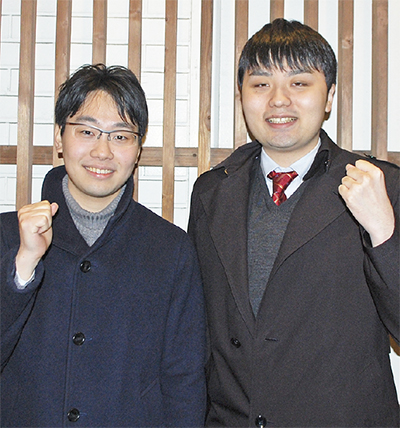 将棋のアマチュア大会の一つ「第40回全国アマチュア将棋レーティング選手権神奈川県予選会」が昨年末に平塚市で行われ、共に区内在住の菅野倫太郎さん(28)と浅倉孝幸さん(24)が県の代表として勝ち残り、今年5月に行われる全国大会への挑戦権を手にした。