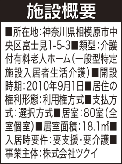 「真心込めた24時間介護」で穏やかな暮らしを提供する介護付有料老人ホーム「ツクイ・サンシャイン相模原」では、長年の在宅介護の経験に基づく利用者目線のサービスに加え、近隣の総合病院との連携による医療体制で安心の介護に取り組んでいる。