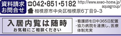 市内外に高齢者施設を14施設運営する(株)エクシオジャパンの連絡先は、【電話】042・851・5182へ。