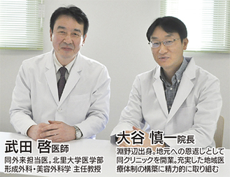 担当する専門医は北里大学病院形成外科・美容外科の武田啓医師。大学病院では原則、紹介状がないとかかることができないが「市民がより気軽に相談できる医療環境を」との大谷院長の思いに応えた。