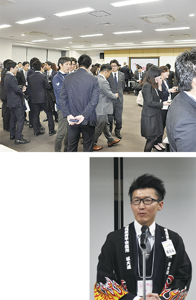 冒頭、小山理事長のあいさつに続き同会議所の九嶋俊彦さんがイベントの趣旨などを説明。その後、参加者同士名刺を交換し、同会議所の会員との交流も行われた。中には意気投合し、具体的な仕事の話を進める姿も見られた。