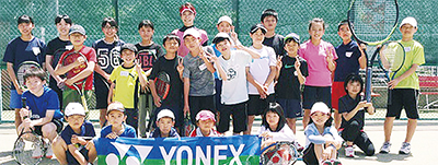 今年創立35周年を迎えることを記念し、ゼストテニススクール(中央)で6日、過去に日本代表としてアテネ五輪にも出場した元プロテニス選手・小畑沙織さんを招いたテニス教室が開催された。