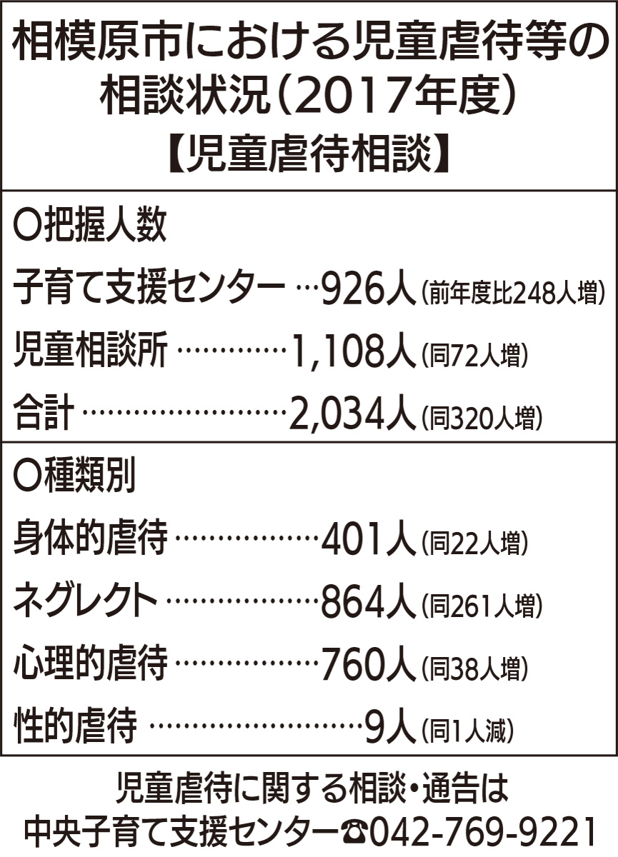 相模原市は16日、昨年度における児童虐待などの相談状況を発表し、児童相談所が市に設置された2010年以来、虐待が疑われる児童の数は過去最多となった。全国的に児童虐待が増加傾向にある中、市では、窓口を一元化した「子育て支援センター」の設置などで「虐待の実態を把握しやすくなったことが要因の一つ」としている。