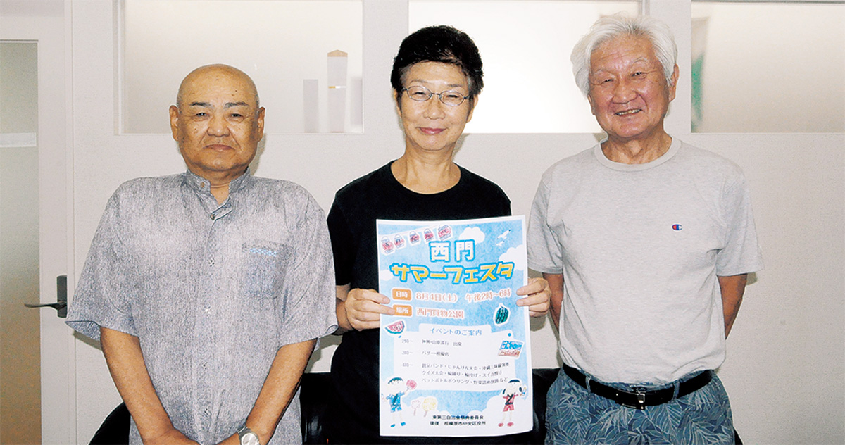 幅広い年齢の人々が集い、つながりを深める場にしてもらおうと、中央地区の東第三自治会が主催して8月4日(土)、西門買物公園を会場に「西門サマーフェスタ」を開催する。三世代すべてが楽しめるイベントとして交流を深めるとともに、「顔が見える」関係を築くことで地域のさらなる活性を図るねらいがある。