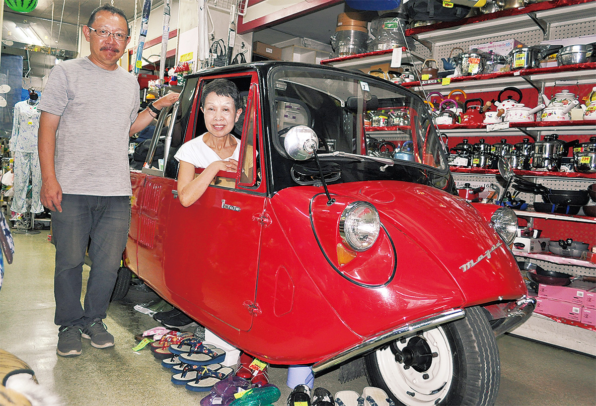 展示されているのは1959年に発売されたマツダ(当時は東洋工業)の「T600」。街の便利な金物屋として慕われる同店では創業当時、同車が商品の運送などを担っており、現在の店主・森光雄一郎さんの祖父と父・孝雄さんの「相棒」として長く活躍したが、30年前に引退した。