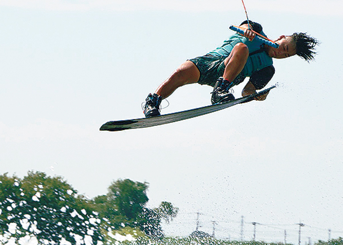 ウェイクボードはアメリカが発祥で、船に繋いだボードに乗り、船が起こした波を利用してジャンプや回転などの技を披露するウォータースポーツ。片野さんは父親の影響で小学4年生の頃に同競技をはじめ、今年1月には市内で初めてのプロ選手となった。