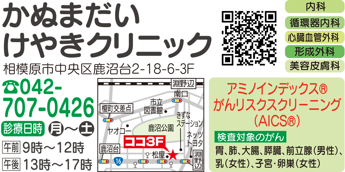 また同院は市の検診協力医療機関として、肺がん検診や大腸がん検診、胃がんABC検診などを受けることができる。治療の際は地域の大学病院等とスムーズに医療連携を図るなど、「AICSⓇ」と併せ、がんの早期発見・治療につなげる体制を整えている。市がん検診の予約は随時受付。