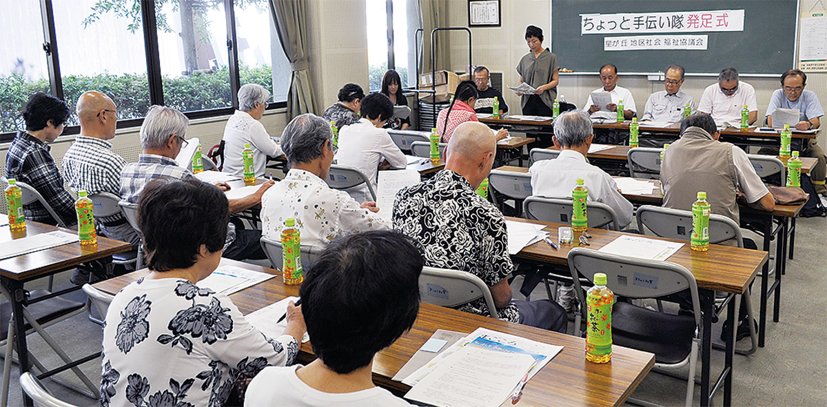 星が丘地区でこのほど、「ちょっと手伝い隊」が発足した。ごみ出しや買い物の手伝い、庭の草取りなど高齢者が介護保険などの制度のもとでは解決できないような「ちょっとした」困りごとを地域の中で解決し、互いを見守る機運を醸成していく。