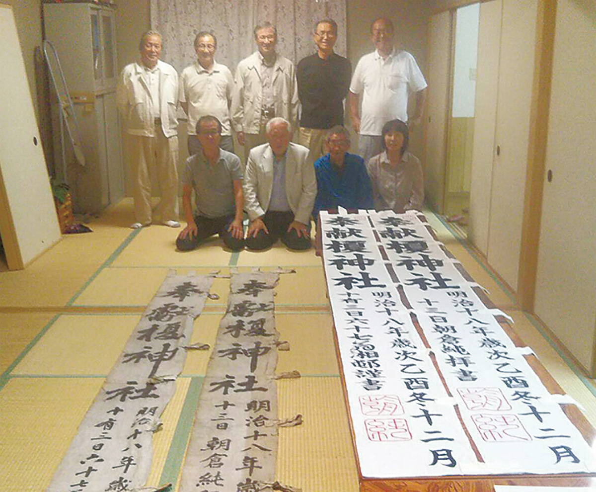 区内横山台にある榎神社ののぼり旗がこのほど、同社の管理・運営に携わっている日金沢自治会によって新調された。これまで同社の重要な祭事の際などに掲げられていたのぼり旗は、記録から明治時代に作られたものとみられ、歴史的に価値があると考えられることから、同会で大切に保存されるという。