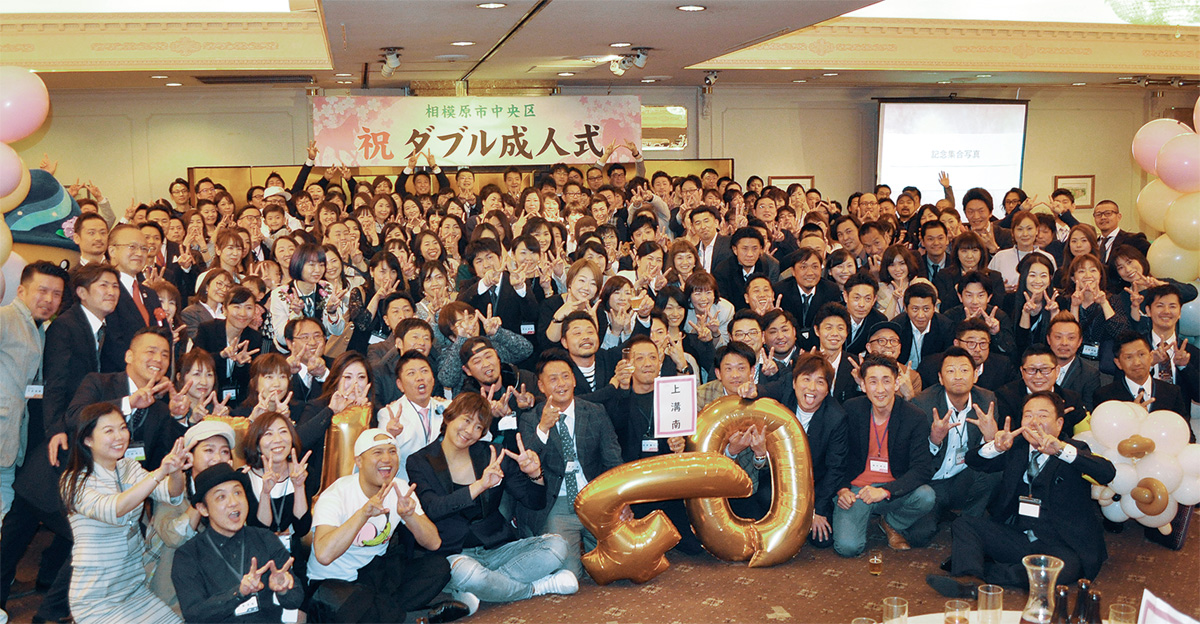 区内中学校出身者で40歳を共に祝う「相模原市中央区 ダブル成人式」が17日、ホテルラポール千寿閣で行われた。