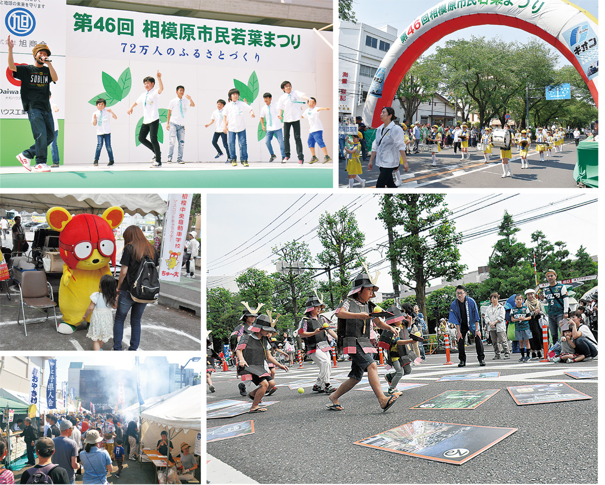 初夏の祭典「相模原市民若葉まつり」が、11日と12日に市役所さくら通りで開催された。統一地方選の年に桜まつりに代わって行われる同まつり。2日間で4年前の同まつりを上回る延べ40万人が来場した。