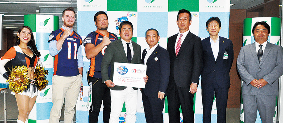 相模原市のホームタウンチームとして活躍するノジマ相模原ライズ(アメリカンフットボール・Xリーグ所属)が20日、市役所を訪問し、本村賢太郎市長に今季にかける意気込みを報告した。