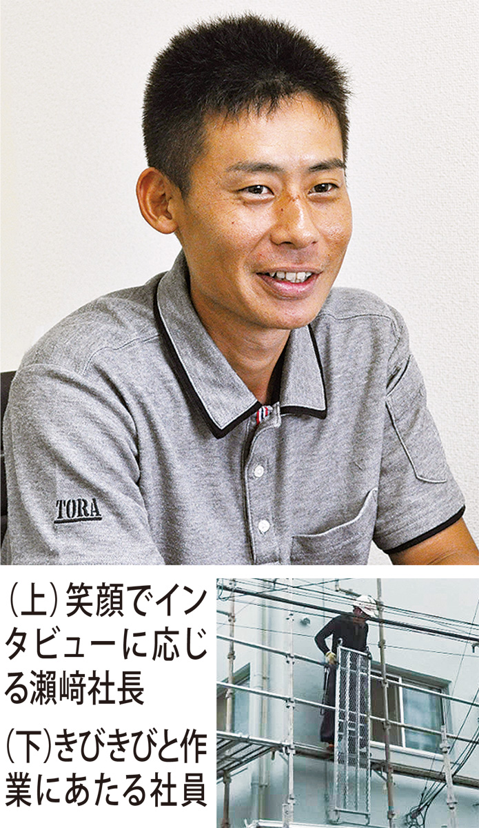 瀨崎社長がとりわけあいさつを大事にしているのには理由がある。それは、足場組立は工事のスタート作業であり、ここで問題があると後の業者の作業に支障をきたすだけでなく、作業全体にも影響しかねないためだ。こうしたきめ細かい配慮が好評を博し、次の仕事の依頼に結び付くことも多々ある。誠実な対応でクレームもないことから、社員が作業に専念できる環境づくりを通じて働きがいをもたらしている。