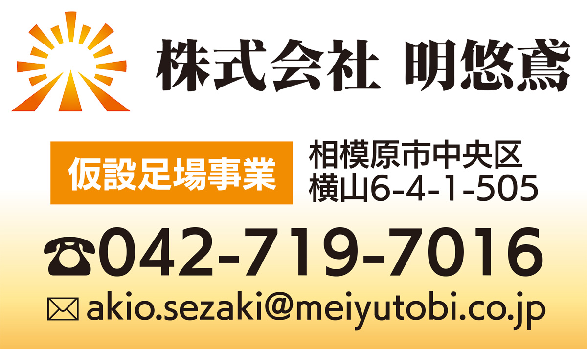 一般住宅、マンションの塗装などの足場組立を業務とする「明悠鳶(めいゆうとび)」(横山)が最も大事にしているのが「清潔感とあいさつ」。職人に対する悪く思われがちなイメージを払しょくするため瀨崎明生社長が指導しているもので、「あいさつ」「笑顔」「受け答え」「態度」の4つを社員指導のポイントに据える。「確かな施工、安全な作業は当たり前。その上で、清潔感、皆様へのあいさつなど当たり前にしてもらいたい」と話すように、同社が担当する現場は整然として清潔。近隣住民へのあいさつも丁寧で、工事全体を遅滞なく完了させている。
