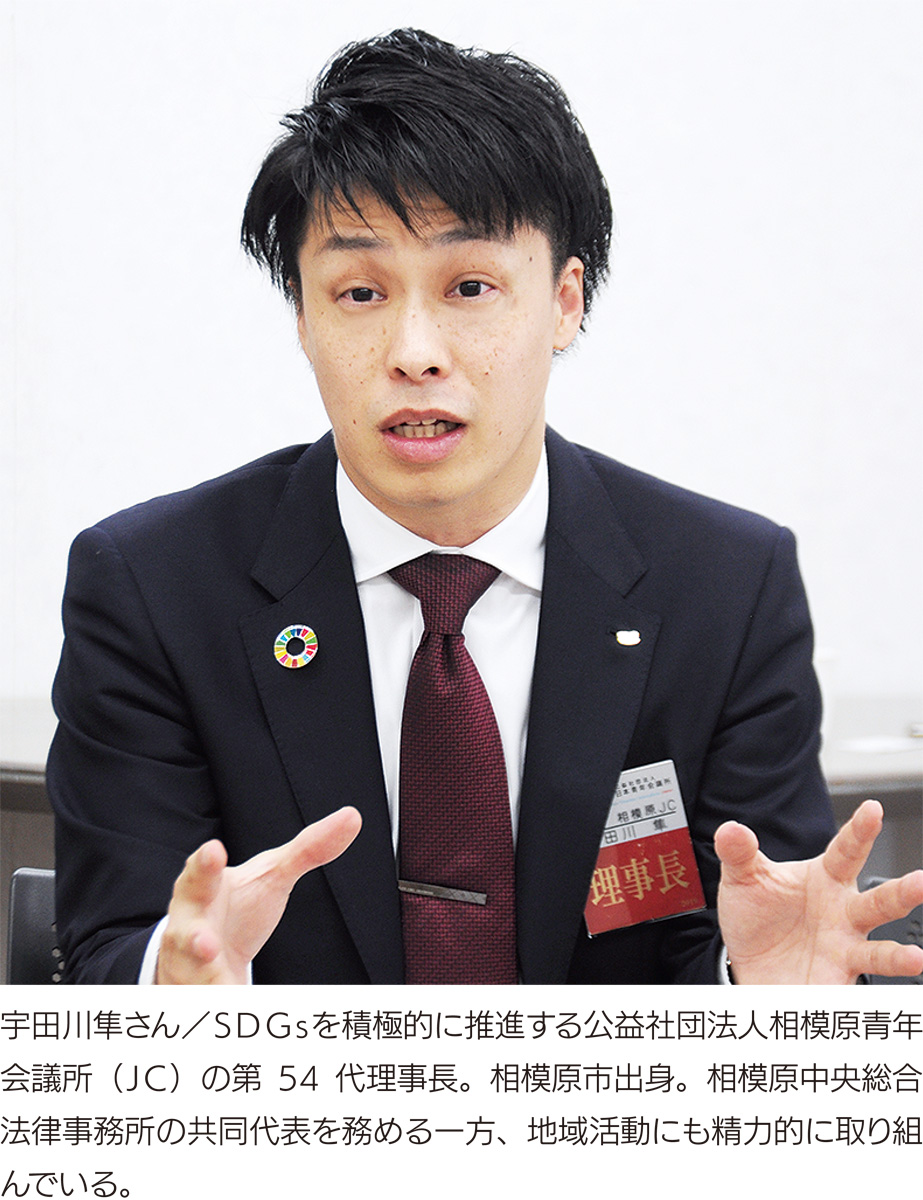 世界が直面する多くの課題。SDGsは、これらの課題を解決しうる可能性を秘めている。持続可能な未来をめざす上で、相模原からできること、そして私たち市民がなすべきこととは。ともにSDGsを推進する相模原青年会議所(JC)の宇田川隼理事長と相模原・町田大学地域(さがまち)コンソーシアムの学生の会話から、SDGs達成へ向けた「可能性」を探る-。(聞き手:さがみはら中央区編集室 記者 町田優依)