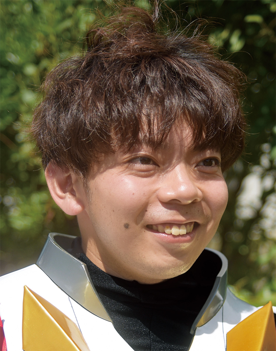 ○…小さい頃の夢は仮面ライダー。「とにかく全てが格好よくて、毎日真似していました」と明るく笑う。変身ベルトをコレクションするほどの筋金入りのヒーローファンだった。そんな憧れのヒーローになるきっかけが訪れたのは突然。所属する市民ミュージカルでの活動を通して相模原への愛着が育まれる中で「相模原のために何かしたい」という思いが強くなり、「ヒーローに変身」することをひらめいた。地元ご当地アイドル「つぶつぶ★DOLL」のサポートを務めていたことから同グループの作曲家らとの縁で、ご当地ヒーローとして今年CDデビューを果たす。現在は地域のイベントなどでデビュー曲を披露している。