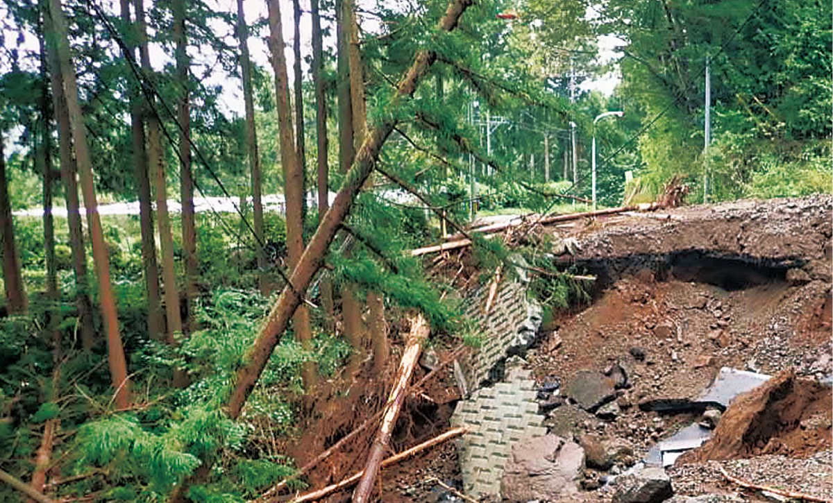 相模原市から山梨県道志村方面へ抜ける主要道路である国道413号は、台風19号の影響による山からの土砂崩れで、青山交差点と両国橋交差点の中間辺りの位置にある路面が2カ所崩落し、約6Kmの区間が通行止めとなっている。