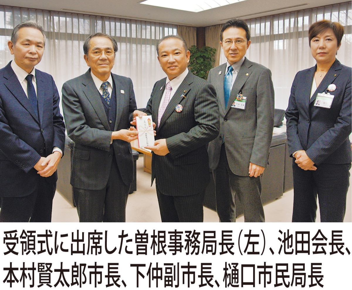 市文化協会(池田宗道会長)は1月8日、台風19号にかかる義援金10万円を市に寄付した。