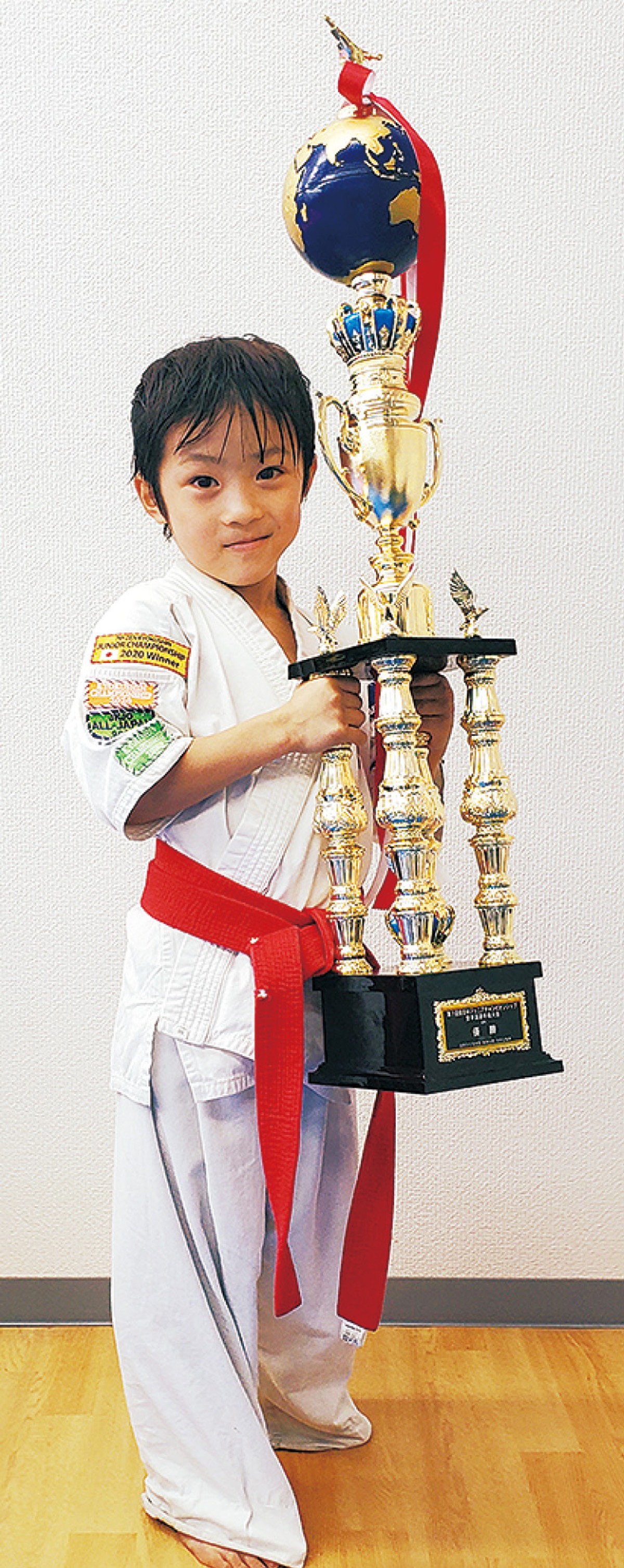 井上君は、相模保育園に通う6歳児。兄弟と一緒に約1年前から同道場に通っている。練習中に泣いても諦めない負けず嫌いな性格で、めきめきと上達。大会では全国各地から集まった若き選手たち32人の頂点に立った。現在の井上君の身長は約110cm。自身とさほど変わりのないトロフィーを掲げ、「また来年も優勝したい」とはにかんだ。