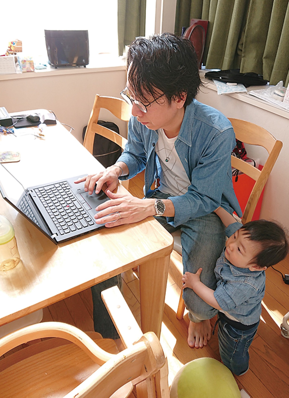 総務部総務法制課に在籍する男性(37)は25日、初めて在宅で業務に当たった。所用で出かけなければならない妻の代わりに生後9カ月の息子をみるため、もともと有給休暇を取る予定だったが、在宅勤務の話を受けて申請をすることに。普段は通勤で電車を利用しており、往復2時間はかかる。コロナウイルス感染の心配もあった。「これなら仕事を休まなくてもいいし、何より通勤時間を子どもの世話に充てられる」と話す。