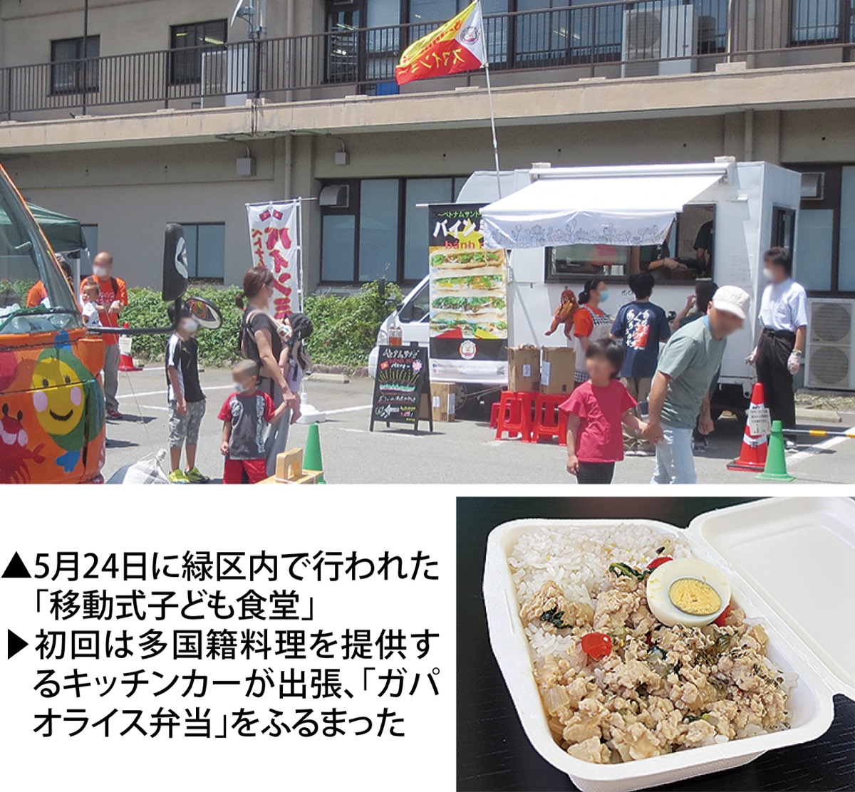 相模原市は新型コロナウイルスの影響に伴う休校を契機に、家庭への食事支援のためキッチンカーを利用した「移動式子ども食堂」を5月24日に初めて実施し、弁当の配布を行った。