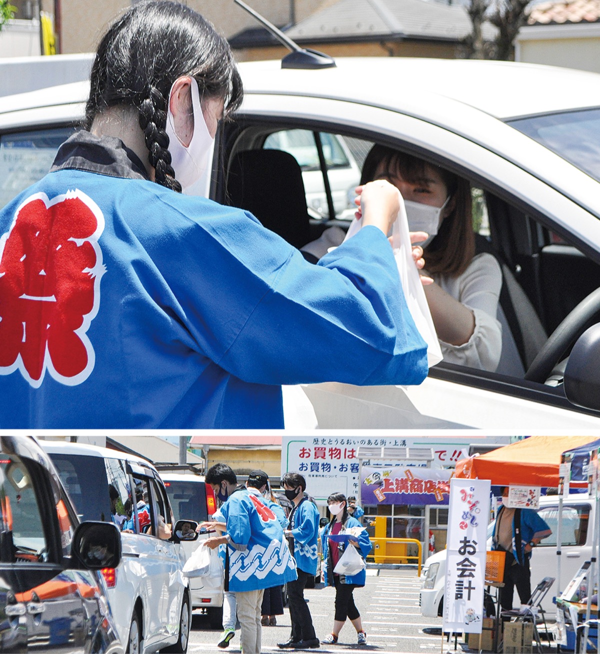 新型コロナウイルス感染を考慮して、車に乗ったまま購入できる「みぞめし 上溝×#相模原エール飯 #エール飯マルシェ 上溝ドライブスルー編」が20日と21日の2日間、上溝商店街中央駐車場で行われた。