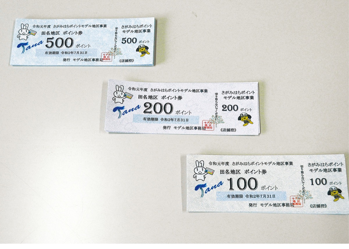 市は地域での活動のうち、市の政策と関連が深く公益性の高いとされる地区防災訓練や交通安全運動、地域福祉活動などにポイントを付与。貯まったポイントは1ポイントを1円として換算され、相原二本松商店街(緑区)、にこにこ星ふちのべ商店会などの商店街のほか、ボーノ相模大野(南区)のアンテナショップ・sagamixなどで利用できる。