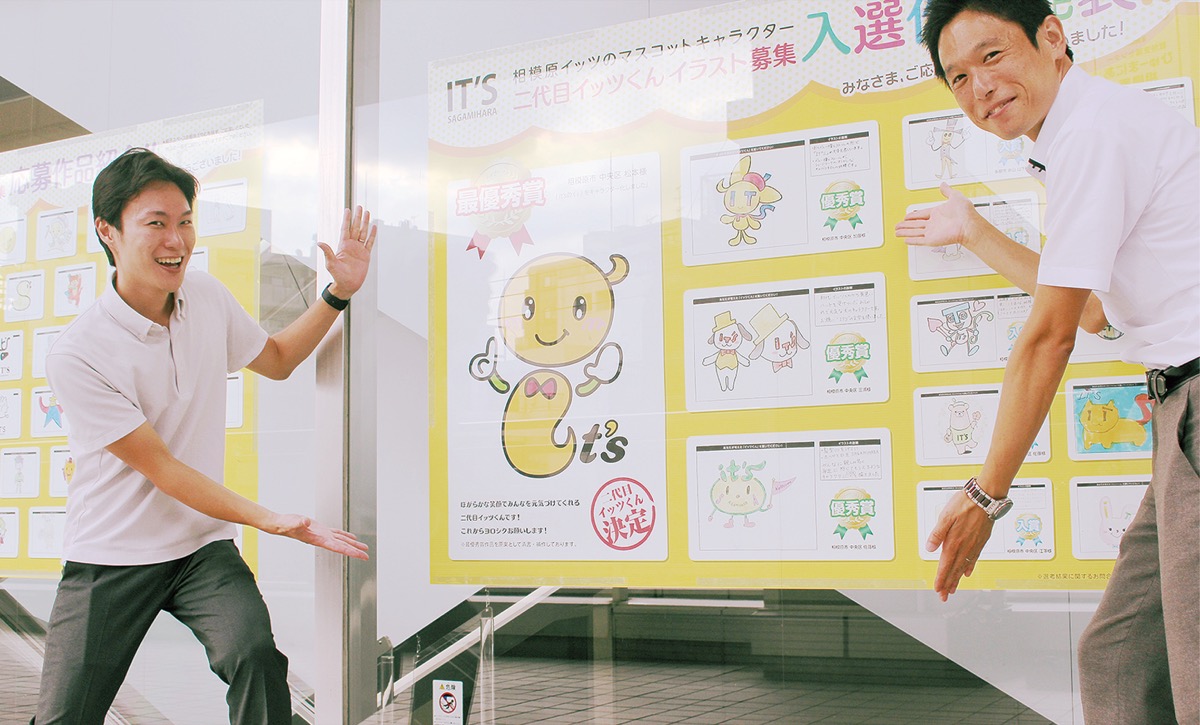 およそ200件の応募の中から選ばれた2代目はイッツのアルファベット読みの「i」がキャラ化されたイラストで、「上へ昇っていこうとする気持ちが感じられました」と保坂さんは話し、「幅広い世代のお客さまに愛着をもってもらえるようになってもらいたいですね」と今後も店内やイベントを知らせるチラシなどに登場させていく考えという。