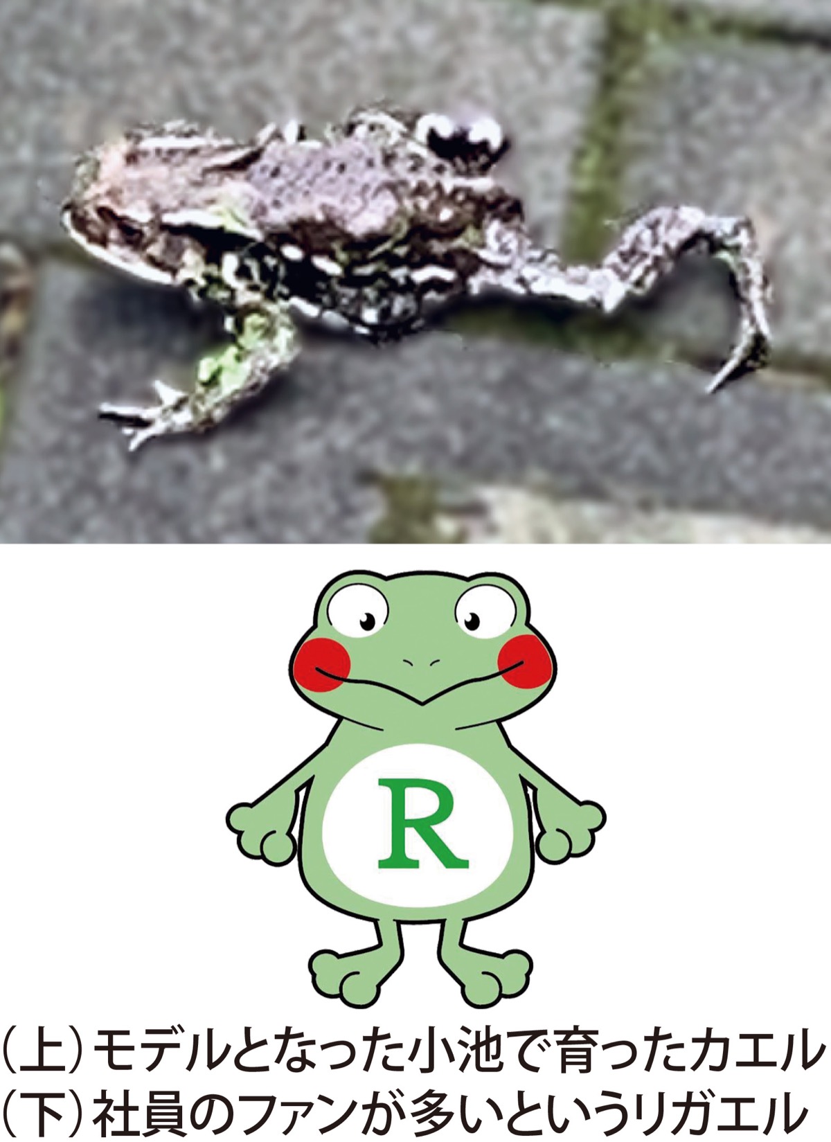 それは、南区の流体機器を取り扱う「リガルジョイント」のリガエル。2013年に創業40周年を記念して生まれたというこのカエルは同社敷地内にある小池に毎年やってくるカエルがモデルといい、「福かえる、無事かえるで幸福、安全なという意味などが込められています。当社に幸せを呼んできてくれています」と同社担当者。キャラ制作以来、営業担当の名刺などに入れると、商談の際、「なんですかこのカエル」といった風に話題になることが少なくないのだという。「当社は業務内容から固い会社ととらえられることが多いですが、リガエルが『やわらかい』イメージをつくってくれています」