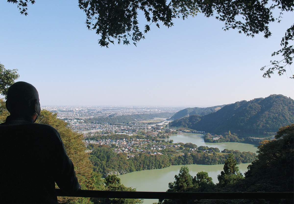 ひと昔前までは地元小学校などの遠足地の定番だったこの名所は約520年前に創設されたといわれ、明治初期の神仏分離によって一時は廃寺となったものの、昭和に入って地元住民らの願いもあり復興。標高約320メートルから眺める景色は都内まで見渡せ、空気の澄んだ冬晴れの時には、東京スカイツリーや横浜ランドマークタワーのほか、静岡方面の富士山なども見ることができるという。