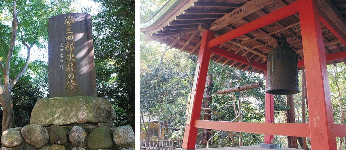 頂上にある寺の境内には、直木賞作家の富田常雄が柔道家の活躍を描いた小説「姿三四郎」で峯の薬師が取り上げられたことを記念した石碑のほか、10円で3回打つことができるという鐘もある。