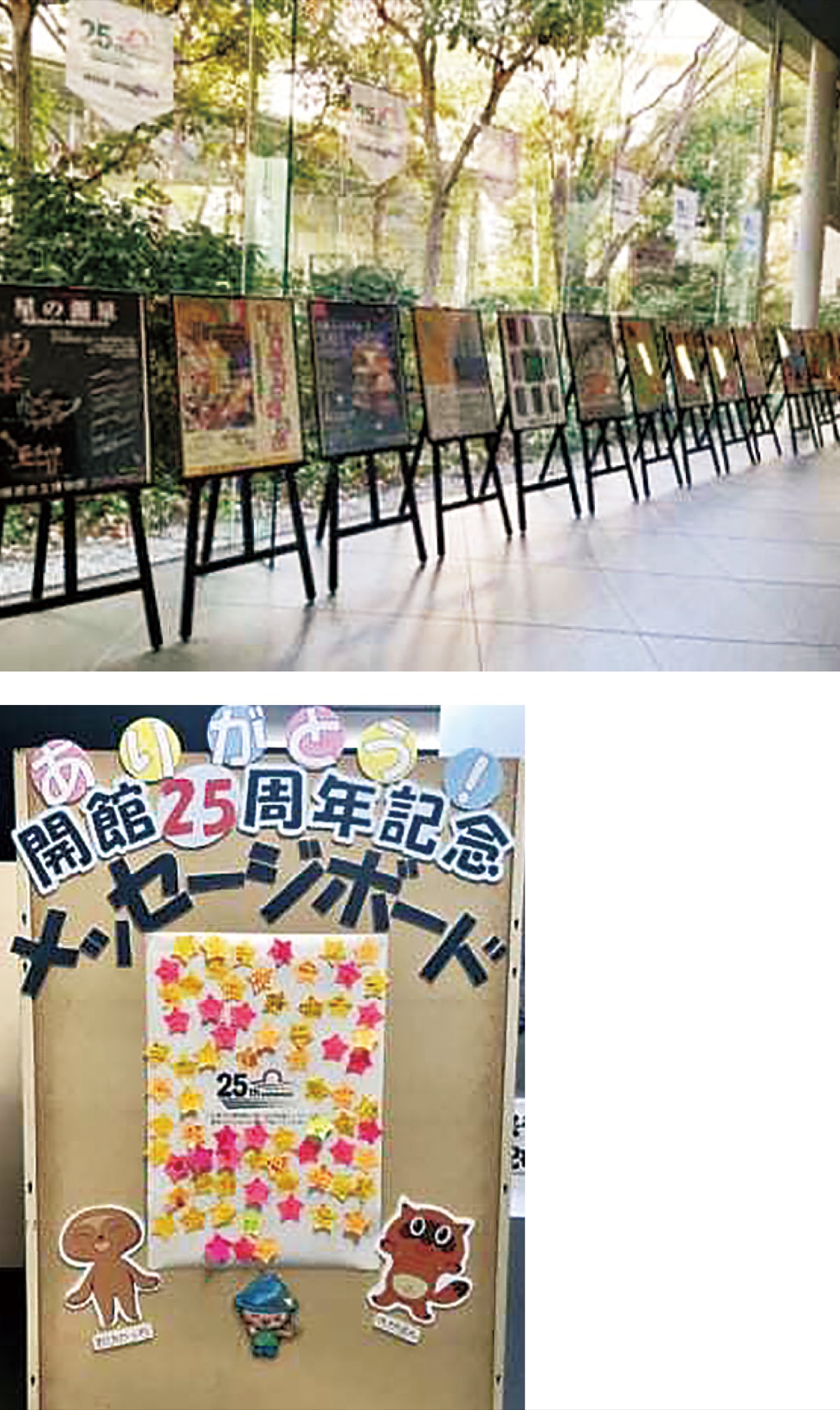 エントランスで行われているのは「記念ポスター展」。同館が今までに実施した企画展や特別展のポスターから25年の活動を振り返る。