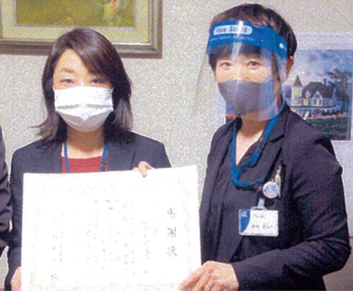 高橋さんは11月24日、「300万円必要になった。会社からお金を借りていて帳簿の検査がある」と孫を名乗る電話を受けた区内に住む80歳の男性に応対した際、不審に思い上司に相談して通報。後に男性が騙されていたことが判明し詐欺を防いだ。同じく職員の山口さんは5月に詐欺を防ぎ感謝状を受けていた。