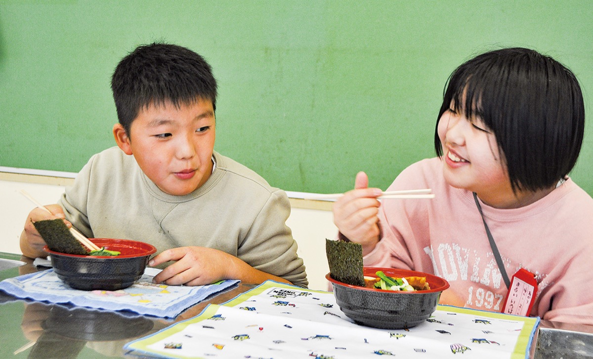 河内さんは「美味しそうに食べてもらい良かった。コロナで行事を自粛する中、子どもたちの思い出になってくれたら」と話していた。試食した柴田陽樹君は「野菜の食感がシャキシャキしてちょうど良い。卵も味がしみている」と感想を話し、波多野颯真君は「あっさりした小松菜と甘い野菜いための味のバランスが良く、とても美味しい」と笑顔で語った。
