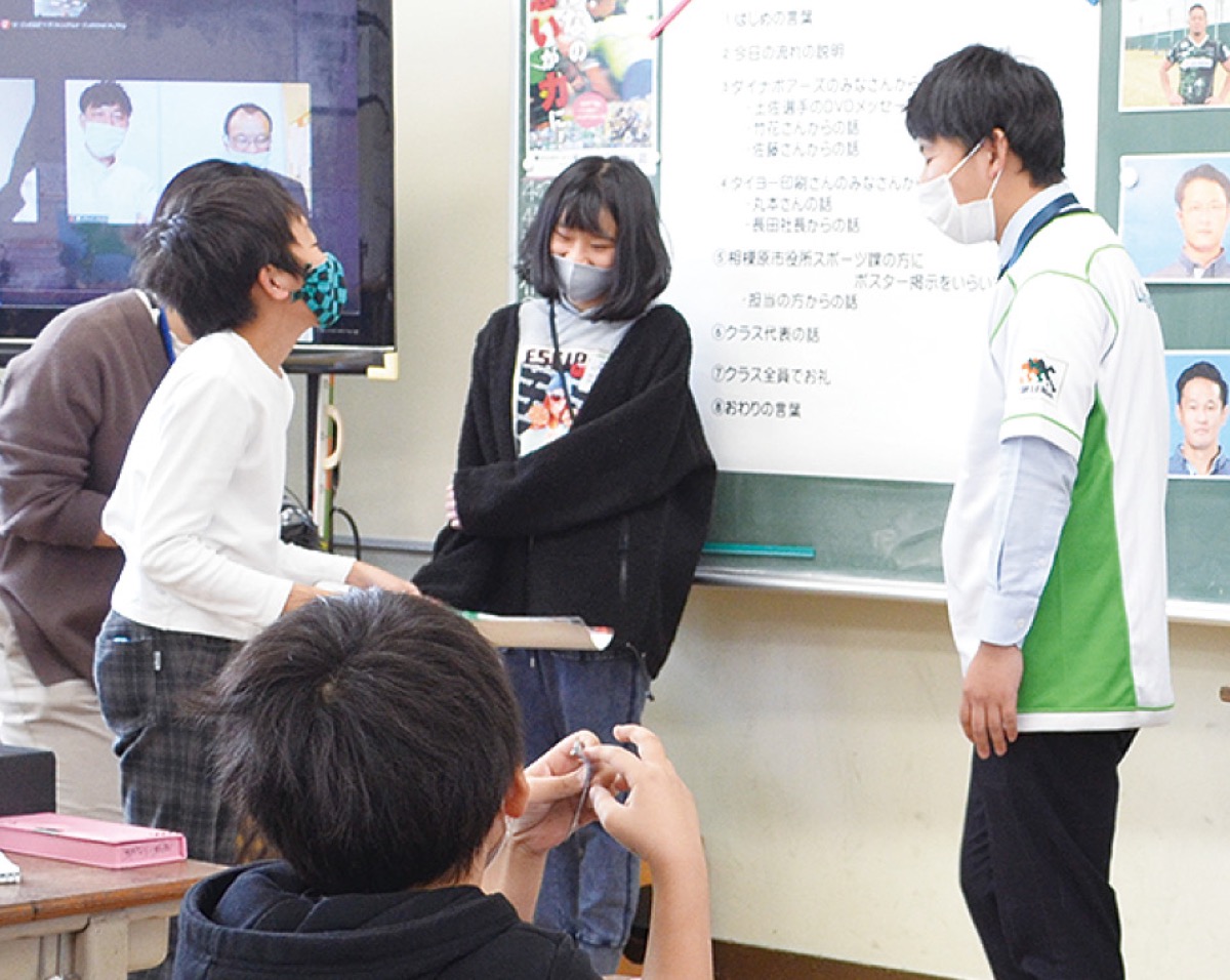 地元ラグビーチーム・三菱重工相模原ダイナボアーズを応援している田名北小学校(佐々木隆校長)の4年生が独自の応援ポスターを制作し、19日に同校でオンラインでの完成披露会を行った。