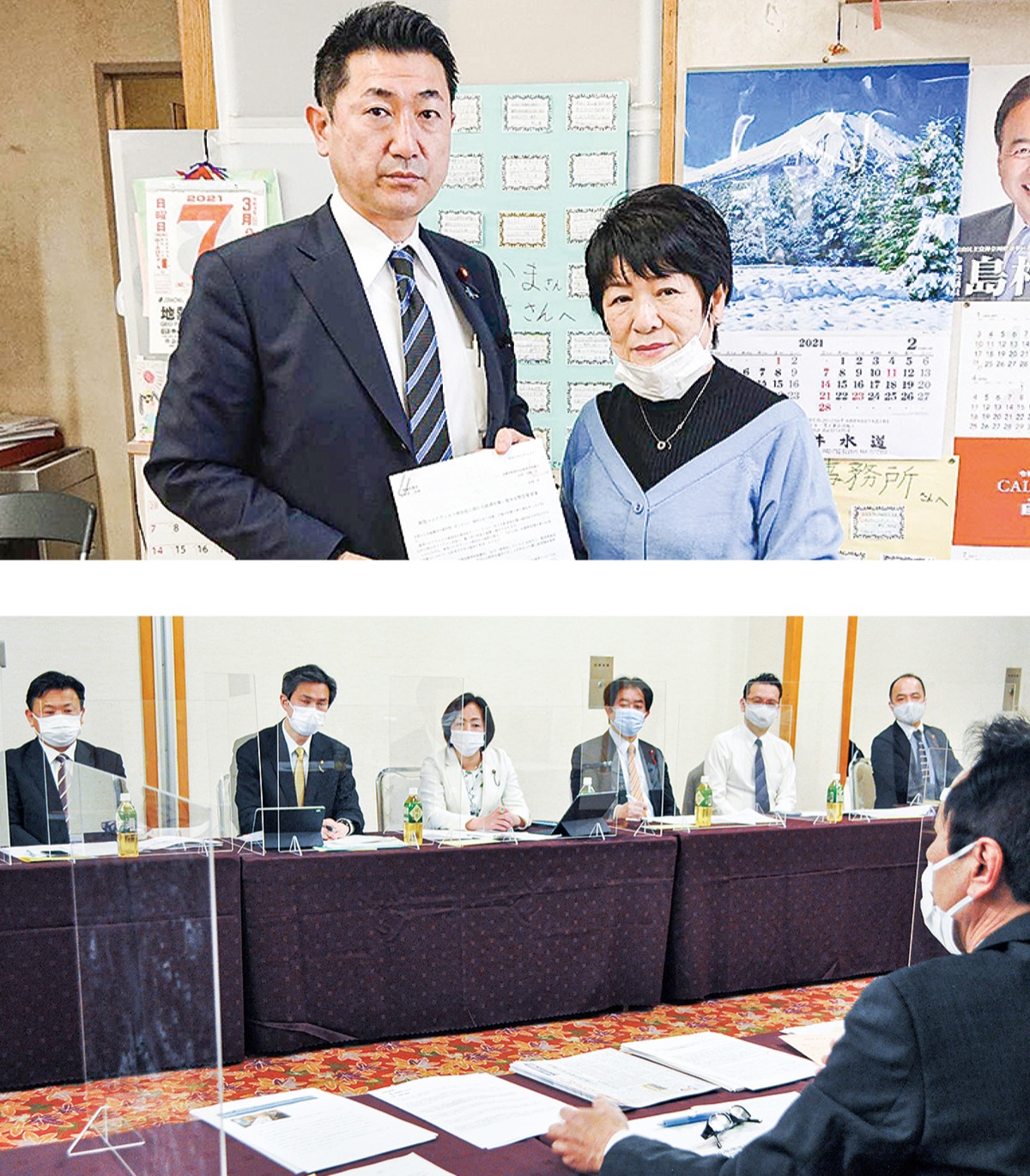 緊急要望書は市のほか、自民、立憲の両党にも提出。それぞれの議員と面会し、意見交換を行った。