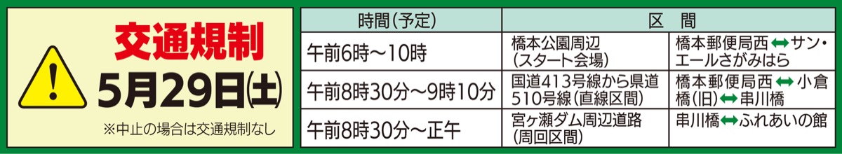 自宅などで観戦できるよう、レースの模様は公式YouTubeチャンネル(https://www.youtube.com/c/BPAJch)で生配信される。レースは橋本公園(緑区)の西側道路から午前8時50分にスタート。ゴール地点となる鳥居原ふれあいの館(同)には正午頃に到着する予定だ。