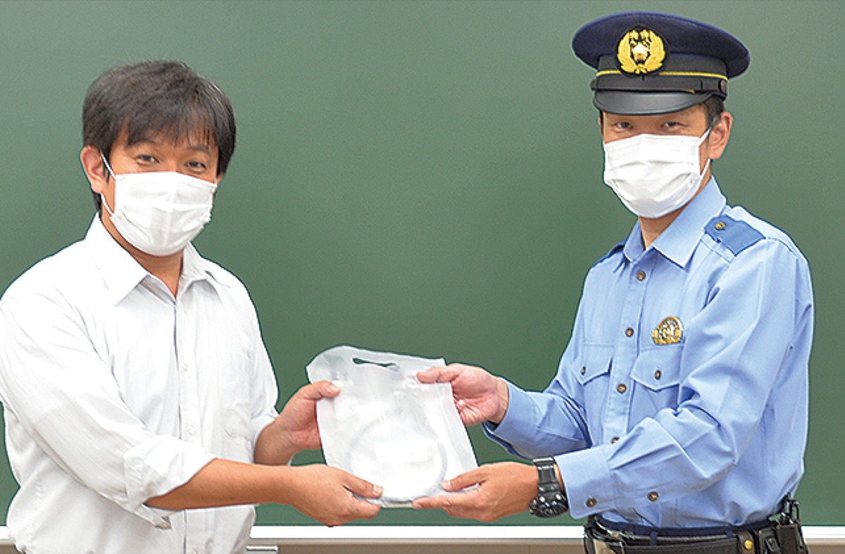 同署生活安全第一課の加藤智也さんは「これを機に防犯意識を高めて。自転車の事故も増えているので気を付けてほしい」と注意を促した。同塾の岸慎一郎室長は「通塾に自転車を利用する生徒も多い。防犯グッズがあることで意識が高まると思う」と謝辞を述べた。