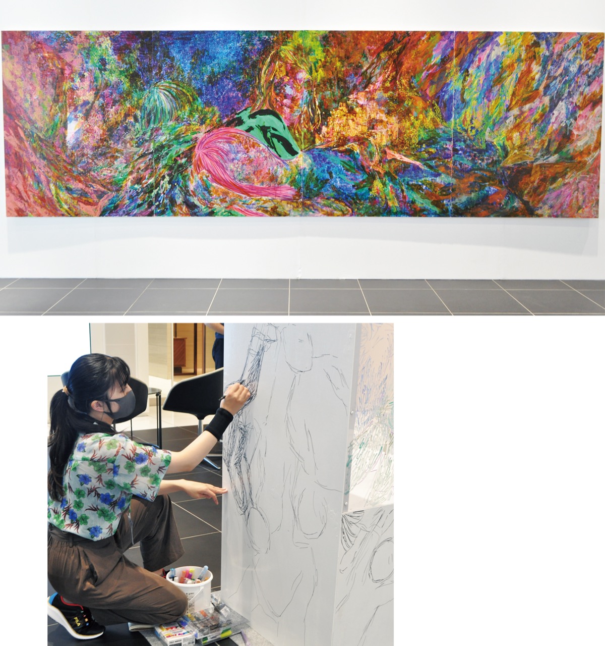 イベント期間中は同財団所属のアーティストである泉里歩さんが線描によって表現されたドローイング作品をショールーム内で実演で制作したほか、幅5メートルにも及ぶ巨大絵画作品も展示され、来場者の目を釘付けにしていた。同財団によると、移動式ギャラリーはさまざま方面に展開していく予定。