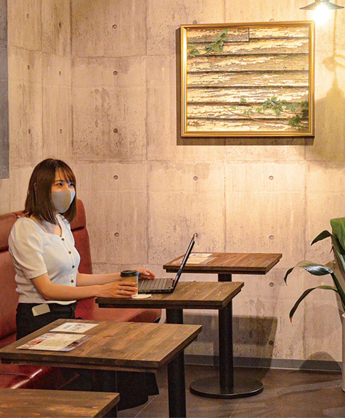 1階はコワーキングスペースで、ウェブ会議用の個室や飲食可能な席を備え、無料のウォーターサーバーとコーヒーを完備。一人ひとりが横並びで座れるよう、テーブルやイスの設置にも工夫がされている。2階は約10室のシェアオフィスと会議室が2つ。3階は1フロア賃しの賃貸、4階は多目的ホールとなっている。同社の川合靖一代表は「地域の人により柔軟な働き方をサポートしたくて、この空間をつくりました」と話している。